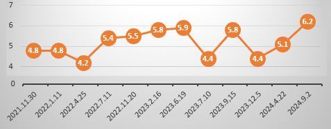PSA数値は4~6の間を推移していましたが、2024年(令和6年)9月2日の検査では数値が6.2と6を突破しました。